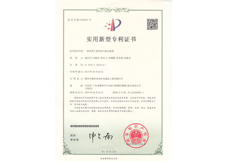 實(shí)用型專利證書2020.04.24