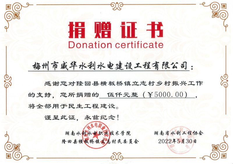 湖南捐贈(zèng)證書5000元