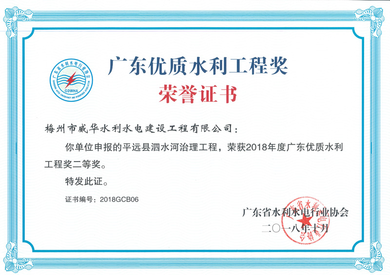 2017.10廣東省優(yōu)質(zhì)工程獎(jiǎng)三等獎(jiǎng)(清涼山水庫擴(kuò)建工程) (廣東省水利水電行業(yè)協(xié)會(huì))